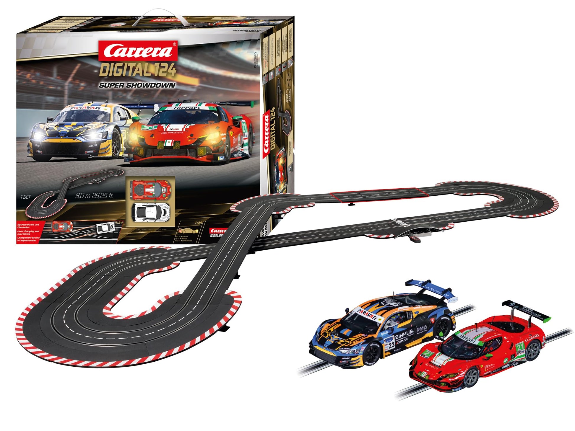 Carrera 23639 Digital 124 Super Showdown Slot Car Race Track Set, 1:24 Scale, 26.25-Feet Long, Includes Wireless Controllers